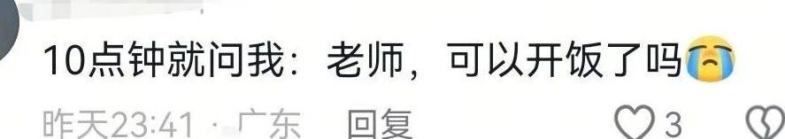还有个孩子,上课才10分钟,就问:“老师,可以开饭了吗?”